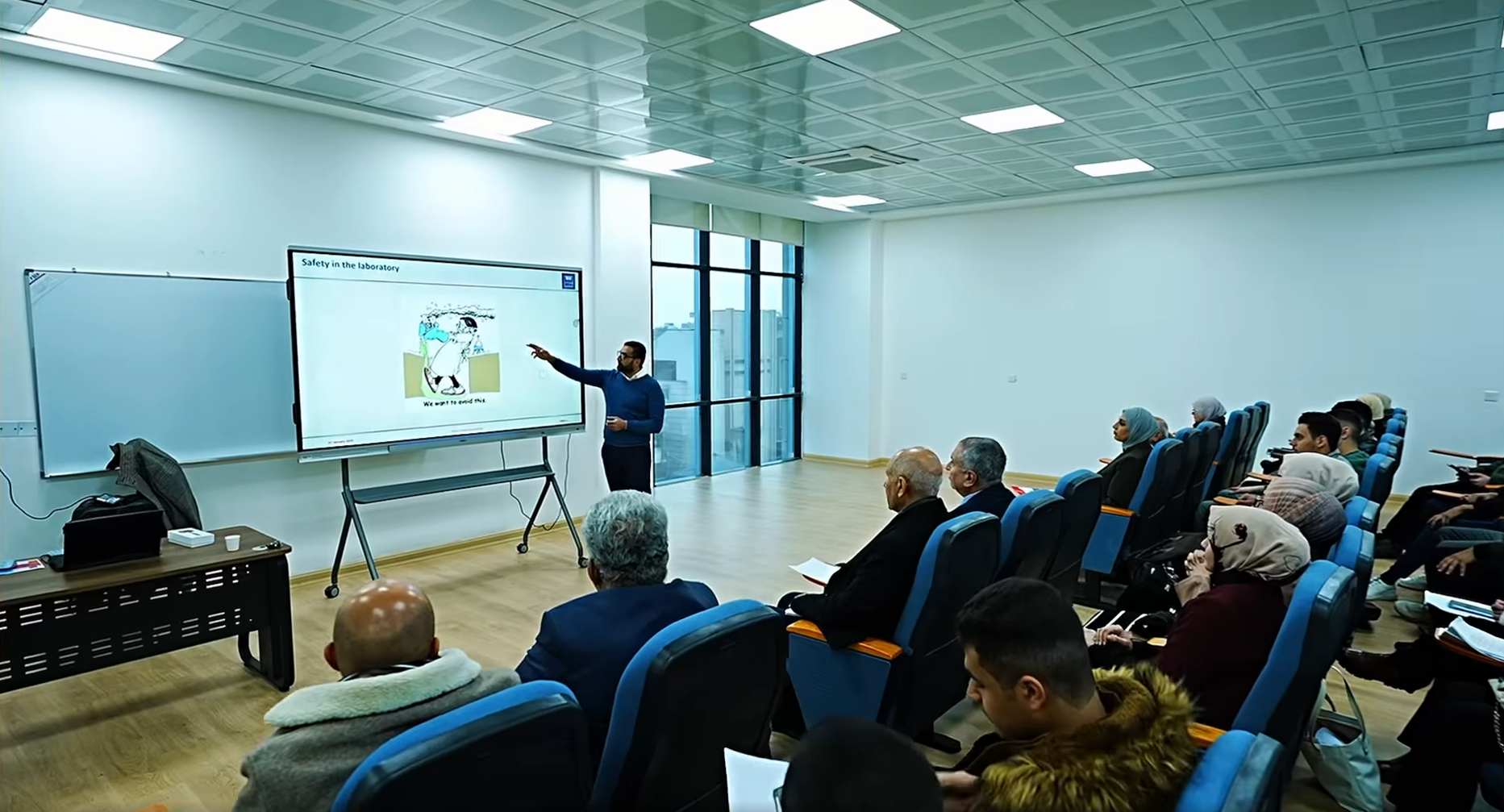 Under the patronage and presence of the President of Al-Naji University, Prof. Dr. Munir Hameed Al-Saadi, the Faculty of Pharmacy held a scientific seminar entitled(Lab Safety rules and guidelines) on Tuesday, 7/1/2025, in which the lecturer Dr. Haider Nimah Abdullah lectured in the presence of the Dean of the Faculty of Pharmacy, Assistant Professor Dr. Mustafa Raad Abdelbagi, deans of the university faculties, a number of faculty and students.