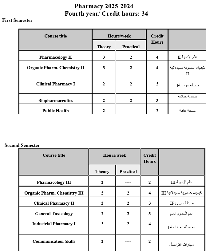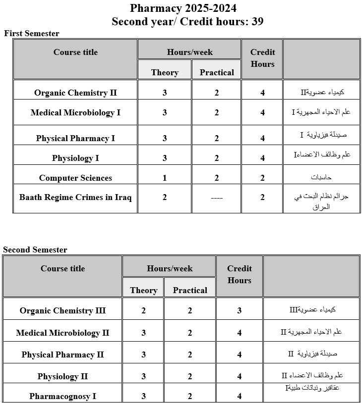 College of Pharmacy Curriculums - Al-Naji University