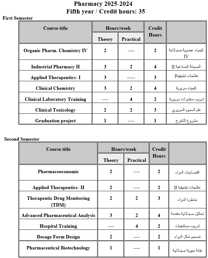Upon completion of all legal and scientific requirements, the student receives a bachelor’s degree in general pharmacy, and the graduate can continue his studies and obtain a precise specialization