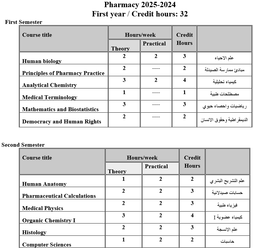 We assure our dear students that they will receive full care and attention through advanced education and training programs. The college’s curriculum offers an integrated scientific base that includes courses in basic medical sciences, pharmaceutical sciences and clinical sciences, in addition to practical vocational training.As the role of the pharmacist advances in the therapeutic and clinical fields, graduates can work in several sectors including community pharmacy, hospital pharmacy, clinical pharmacy, as well as marketing and advertising. They also have the opportunity to work in pharmacy management at the state level and in pharmaceutical factories. In addition, graduates can join the field of teaching and scientific research in various branches of pharmacy.