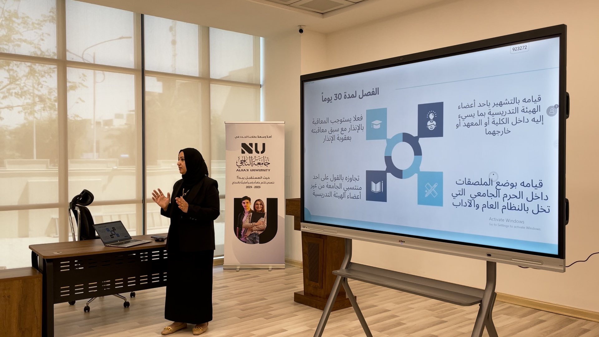 The seminar touched on a detailed explanation of the instructions and laws related to student discipline, in addition to the penalties resulting from behavioral and academic violations, stressing the importance of students’ commitment to these instructions to avoid falling into legal violations.