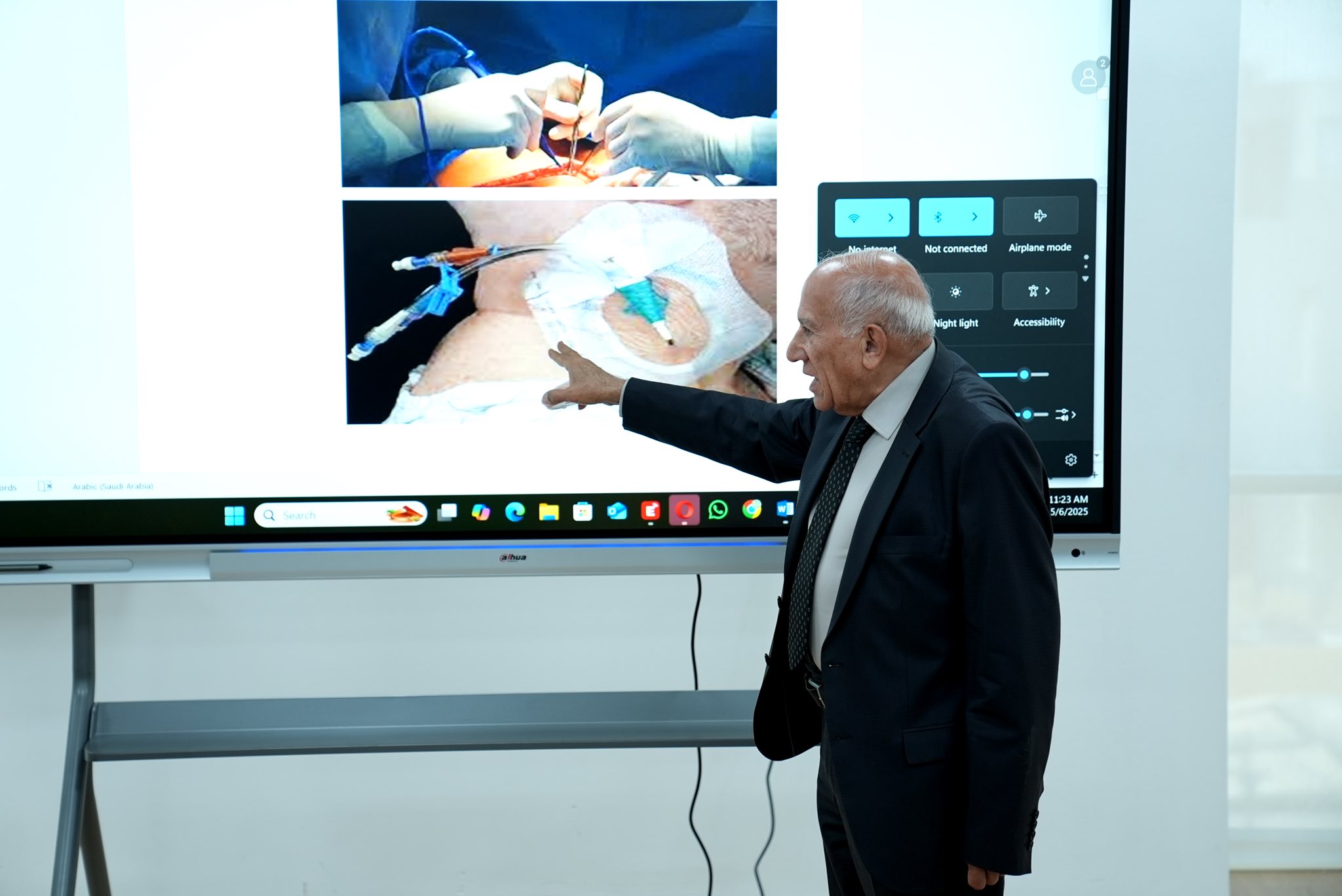 The lecturer also touched on the most prominent causes of bacterial contamination within hospitals, reviewing a set of practical solutions and recommendations to reduce this phenomenon, with the aim of improving the level of health care and ensuring a safe treatment environment.