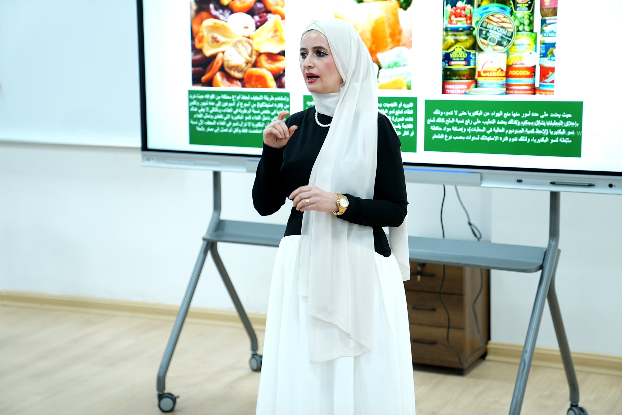 Under the patronage of the President of Al-Naji University, Prof. Dr. Munir Hameed Al-Saadi, Al-Naji University organized a scientific seminar in which Ms. Asmaa Safwan, an instructor at the Faculty of Pharmacy, lectured on two main topics: Food waste and food preservation methods.
