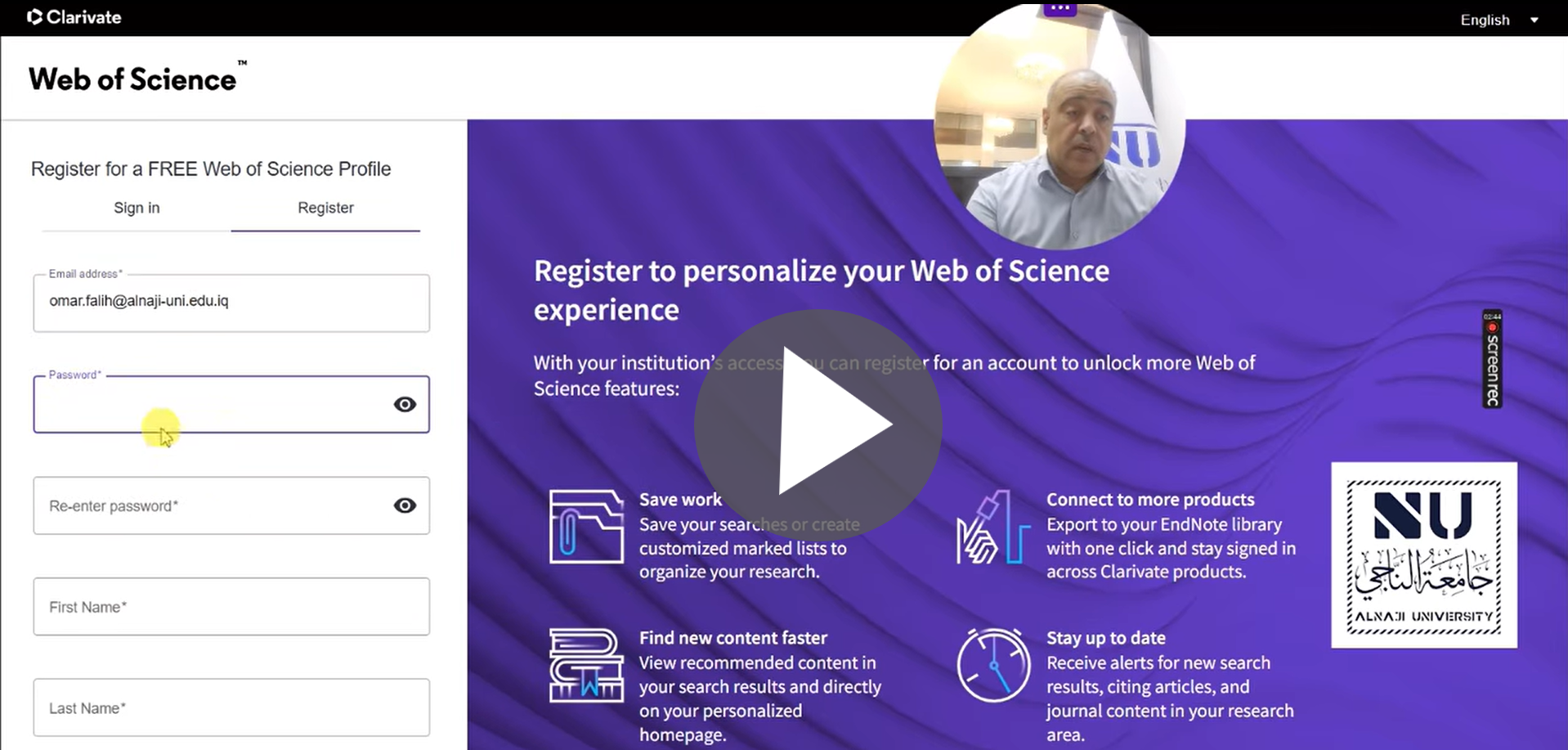 An educational lecture on how to activate the accounts of Al-Naji University faculty in the Web of Science platform